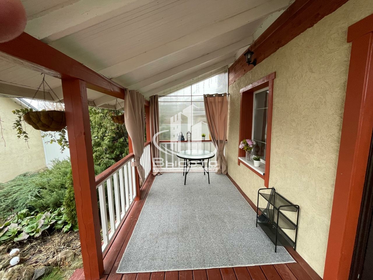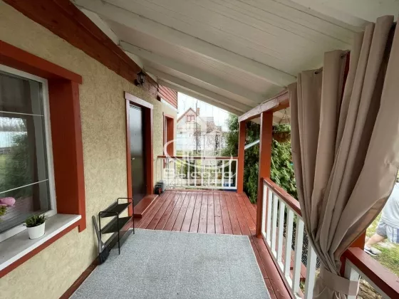 На пером этаже кухня гостиная и совмещенный санузел. Второй этаж две спальни, и холл. В доме два входа, веранда на которой удобно отдыхать в жаркие дни.