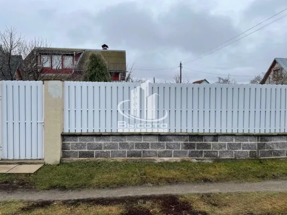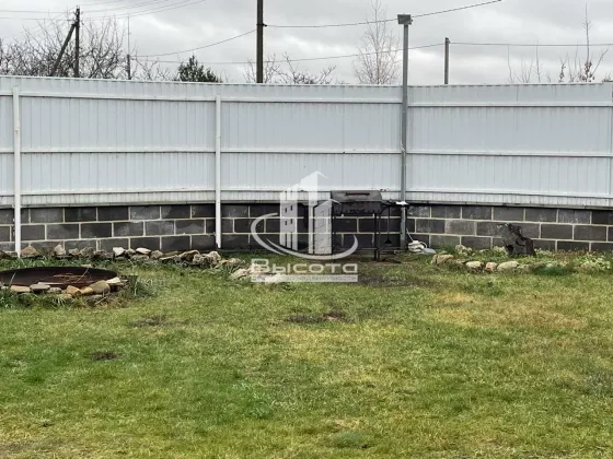 Участок 6,5 соток, загорожен полностью профлистом и декоративным камнем, на участке есть баня гараж и железный гараж, теплица, газон, зона отдыха, декоративные растения, есть своя скважина, погребная яма из 3 колец.