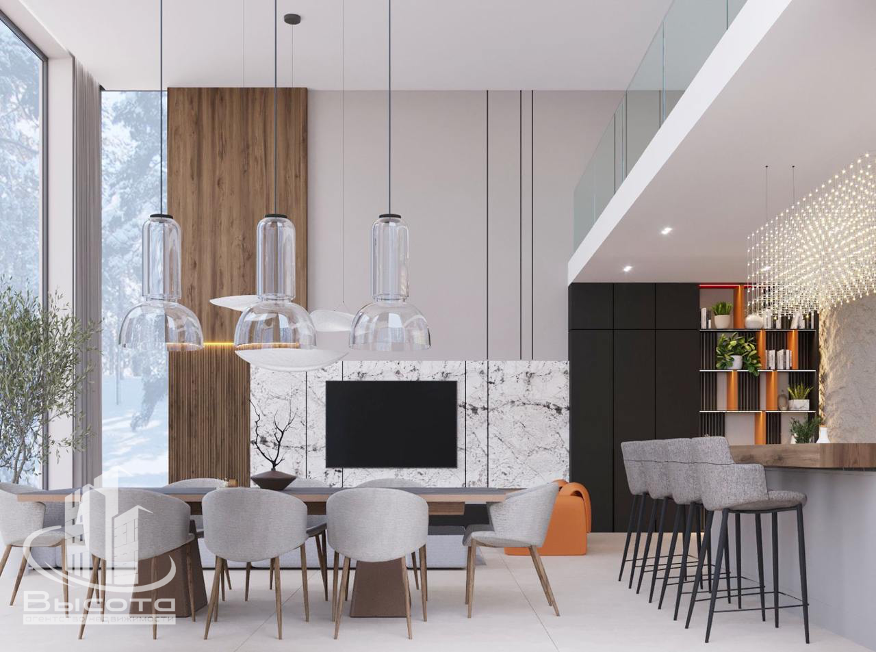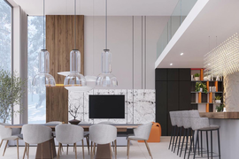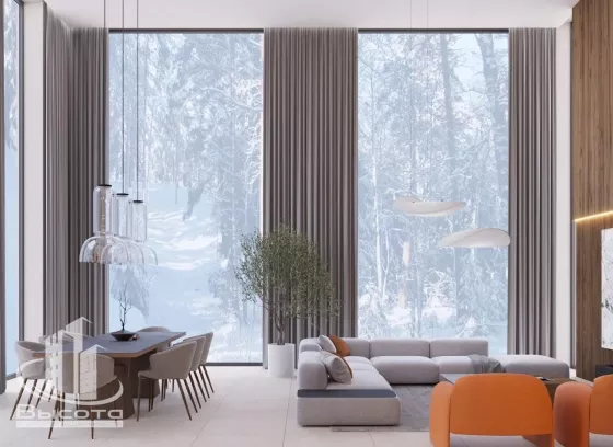Площадь апартаментов 137.6 м2, три просторные спальни по 15 м2, кухня-гостиная 41.2 м2 со вторым светом и высотой потолков 6 метров, три санузла, закрытая терраса с панорамным остеклением и выходом на балкон, с которого можно любоваться красотой лесного пейзажа и дышать свежим сосновым воздухом.