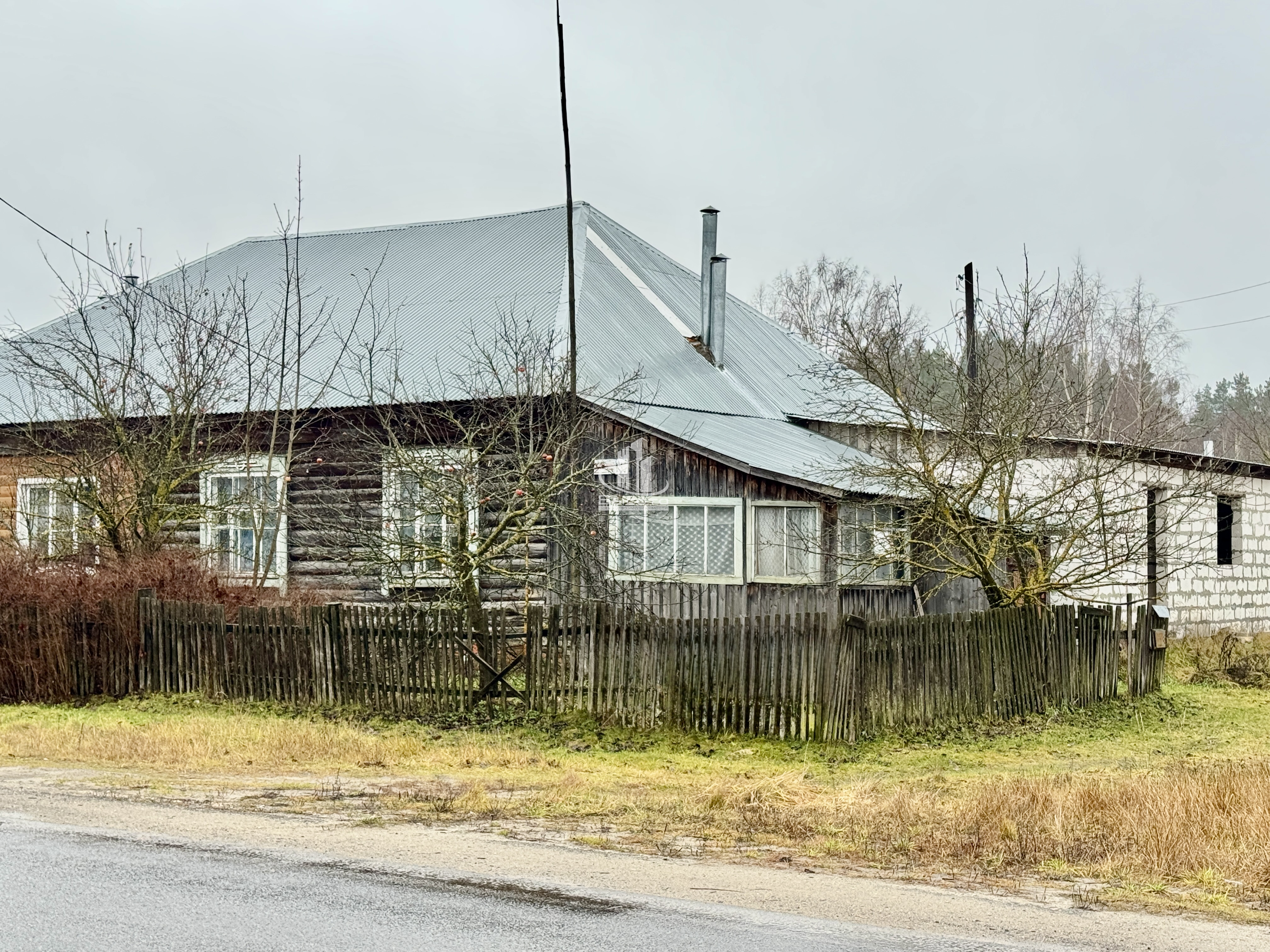 Также входит в стоимость 1/4 дома (статус квартира) площадью 40.8 м2 (две комнаты, кухня) и террасса еще 20 м2, в доме электричество, вода, отопление АОГВ. Дом круглогодичного проживания расположен в 15 метрах от участка.